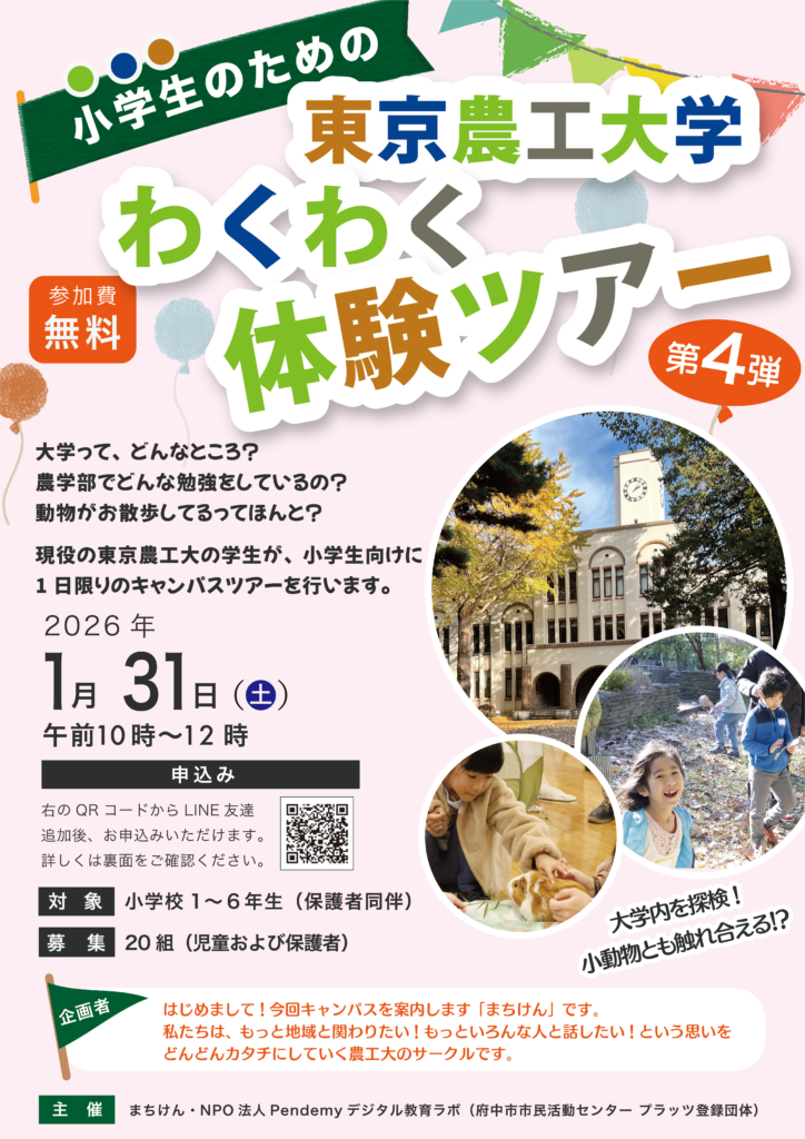 2026年1月のPendemyイベントは、小学生のための東京農工大学 わくわく探検ツアー!第4弾!
